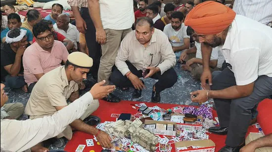 KARNAL, July 4: In what officials are calling one of the biggest anti-gambling operations of the year in Haryana, the Chief Minister’s Flying Squad, along with CID and local police, raided a house in Durga Colony, Gharounda, arresting 55 men and seizing ₹11.90 lakh in cash.