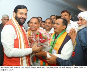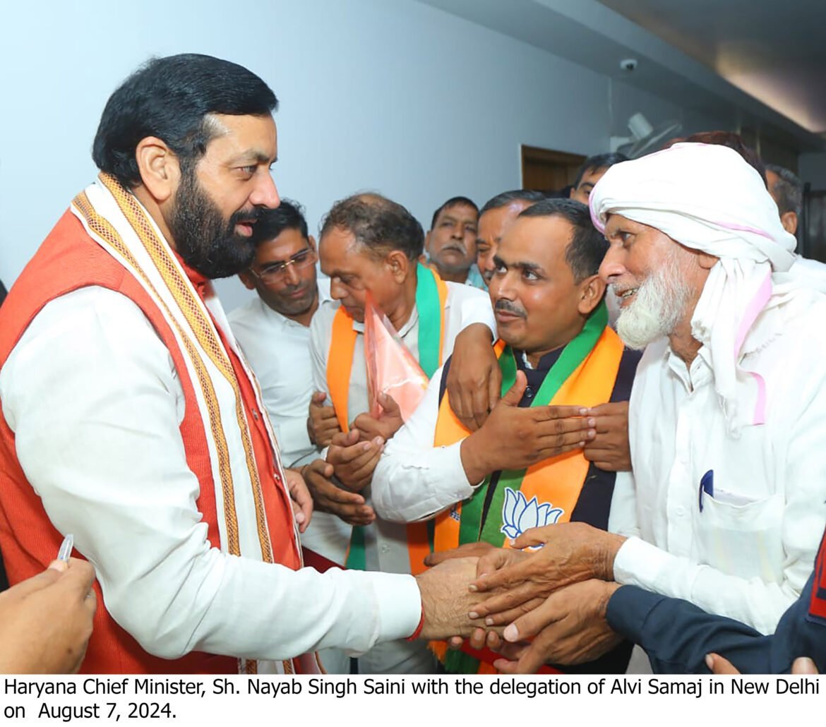 Chandigarh, August 07: A delegation of the Alvi community (a Muslim community in India) met Haryana Chief Minister, Sh. Nayab Singh Saini at Haryana Bhawan, New Delhi, today and expressed gratitude to the Chief Minister for approving the construction of Alvi Bhawan in Pinangwan.