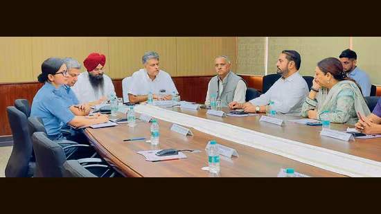 The meeting was attended by MPs Manish Tewari and Malvinder Singh Kang, Mohali Mayor Amarjit Singh Sidhu, Chandigarh Mayor Harpreet Kaur Babla, deputy commissioners, and municipal commissioners from all three districts, along with IAF and GMADA representatives.