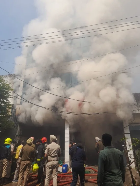 Chandigarh, March 23: A fierce fire broke out in a combined electrical and crockery store in Phase II of the Industrial Area on Monday, leading to the mobilization of multiple fire tenders. The department was alerted to the situation shortly after 9:00 am as smoke began billowing from the commercial complex, visible from several blocks away.