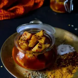 The pickle is mixed well and stored in clean, dry glass or earthen jars. Traditionally, the jars were kept in sunlight for a few days to allow the flavours to develop fully. The anchar could then be stored for weeks or even months.