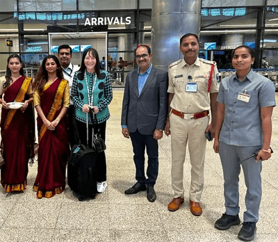 Miss World Limited Chairperson Julia Morley, reigning Miss World Karolina Bielawska, and other delegates arrived in Hyderabad on May 2 and were greeted with a ceremonial welcome at Rajiv Gandhi International Airport.