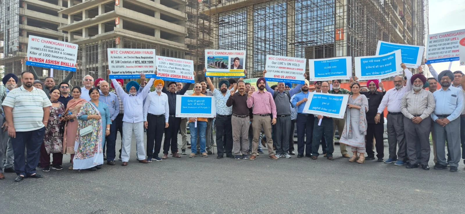 Mohali, March 8: The World Trade Center (WTC) Chandigarh (Mohali) project has become the subject of intense scrutiny as allottees held a demonstration today to protest the developer’s failure to deliver commercial units. Gathering at the project location, members of the allottees’ association raised slogans against the promoter and called for the state authorities to take over the stalled development.