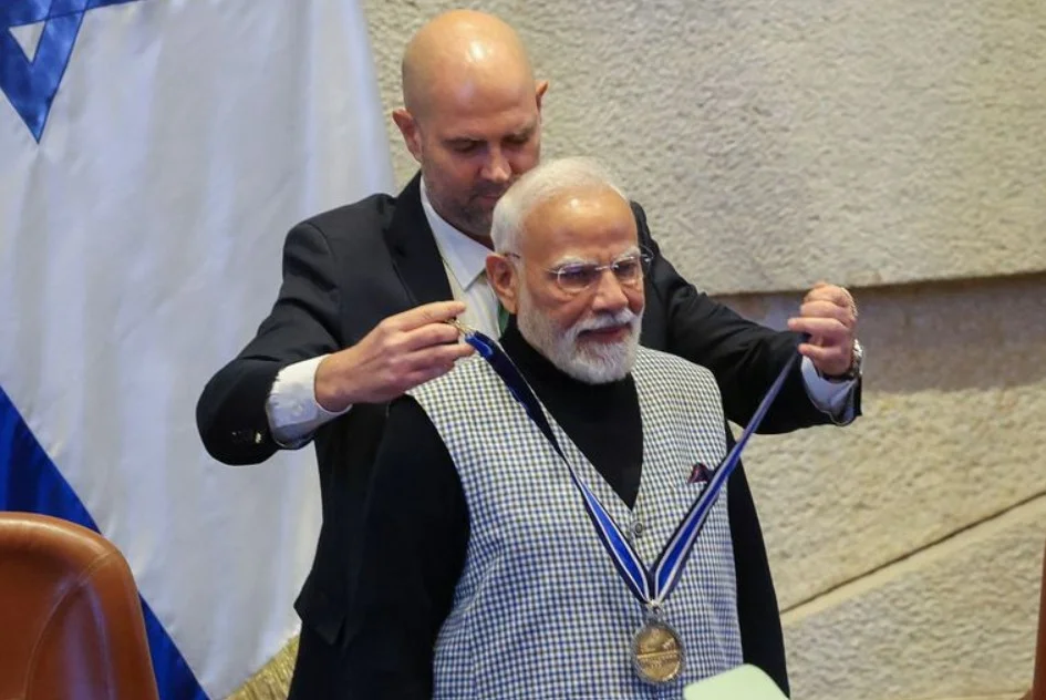 Tel Aviv, Feb 25: The Israeli Parliament has bestowed its highest award, the ‘Speaker of the Knesset Medal,’ upon Prime Minister Narendra Modi during his second official visit to the country. The ceremony took place on Wednesday after the Prime Minister addressed the Knesset, where Speaker Amir Ohana praised the leadership that has transformed the India-Israel relationship over the past decade.