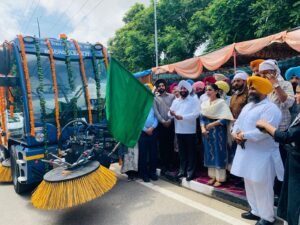 MLA Kulwant Singh further said that the process of cleaning the ‘A’ category roads of the city with 02 mechanical machines which have arrived in the city, has been formally started today by offering prayers. These two machines will clean 110 km of roads by working around 8 hours a day at night. He said that after getting the remaining 2 machines by the end of September, the cleaning of the ‘B’ category roads of the city will also be done with mechanical sweeping machines.