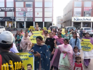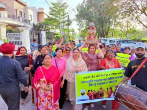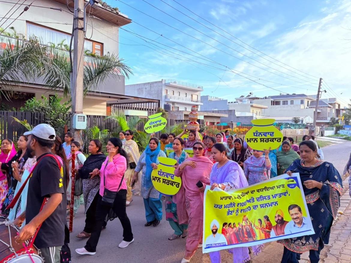 Mohali, March 14: Women from across the Mohali constituency gathered for a celebratory ‘Jago’ procession on Saturday, marking the implementation of the state’s promised financial aid for women over 18. The march, led by Ramanpreet Kaur Kumbhra, aimed to highlight the benefits of the ‘Chief Minister’s Maa, Beti aur Behan Samman Yojana.’