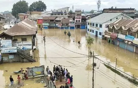 Srinagar, Sep 5: Many areas were submerged in Srinagar outskirts on Thursday after the water from river Jhelum entered the residential areas in Taigan and Shalina localities, prompting the authorities to launch a massive rescue operation. The administration has evacuated nearly 9500 people from different parts of the valley.