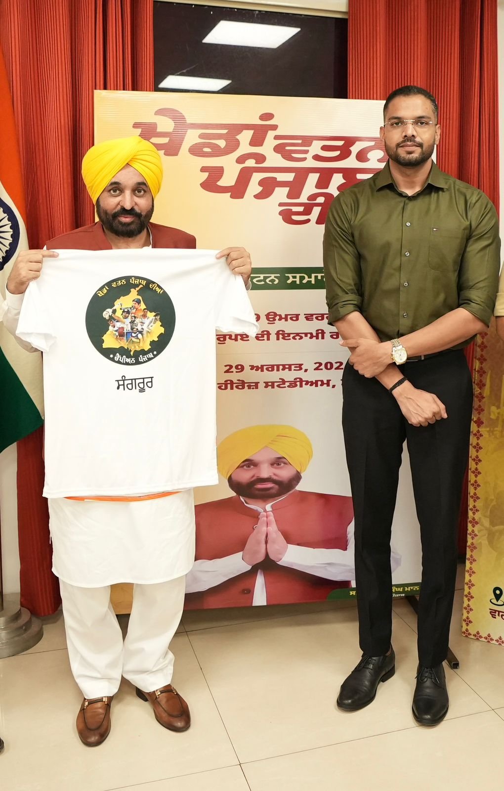 Launching the logo and t-shirt, the Chief Minister said that the mega sporting event will be launched on August 29 to commemorate National Sports Day- the birth anniversary of Hockey Wizard Major Dhyan Chand. He said that more than two months long sporting extravaganza will advent from the War Heroes Stadium in Sangrur. Bhagwant Singh Mann said that it is a matter of immense pride and satisfaction that this time around five lakh players will vie for medals in nine age groups of 37 games.