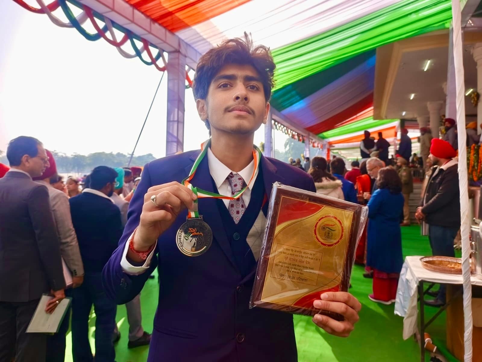 Patiala, Jan. 26 — Amitoj, a junior-level equestrian, was honoured with a Recognition Award on Republic Day for his success at the Junior National Equestrian Championship, where he secured a silver medal as part of a team event.