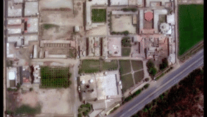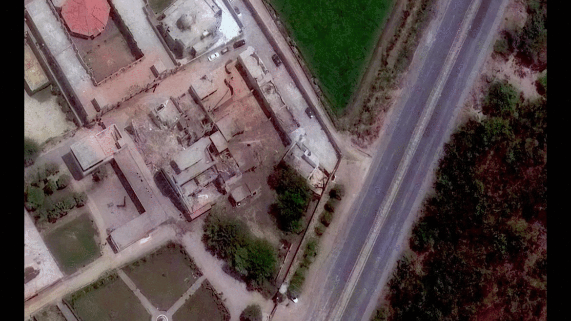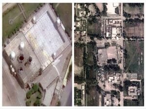 Visual comparisons of satellite images show before-and-after shots of the Markaz Subhan Allah mosque complex in Bahawalpur—JeM’s main operational base—depicting extensive structural devastation.