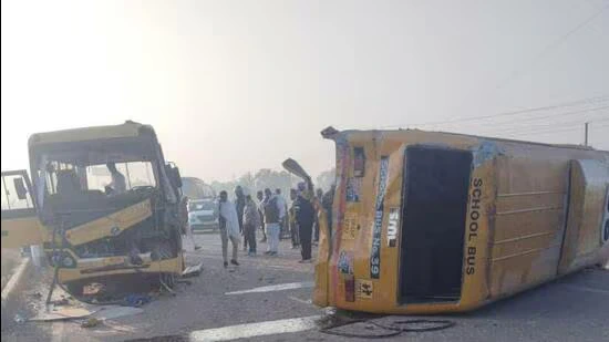 The accident occurred around 8 a.m. when the private school bus struck a bus carrying a wedding party. “Passers-by acted immediately and helped shift the injured to PGIMS,” superintendent of police Surender Singh Bhoria said.