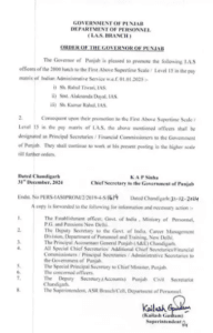 Chandigarh, 01 January 2024: Three IAS officers from the 2000 batch have been elevated to the roles of Principal Secretary and Financial Commissioner by the Punjab Government. The officers—Rahul Tiwari, Alaknanda Dayal, and Kumar Rahul—received their promotion orders late on Tuesday.