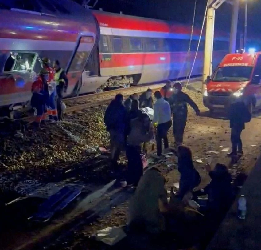 Spain, Jan 19: A high-speed rail collision in southern Spain killed at least 21 people and injured dozens more on Sunday evening after a derailed passenger train jumped tracks into the path of oncoming traffic.