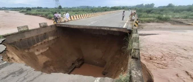 Panchkula district also reported fresh damage after a road near a bridge in Khatouli village, Barwala, collapsed due to rapid soil erosion caused by gushing rainwater beneath it. The cave-in has cut off easy access for villagers, leaving them dependent on alternative routes. Authorities have begun assessing the damage and advised locals to avoid the collapsed stretch until repairs are carried out.