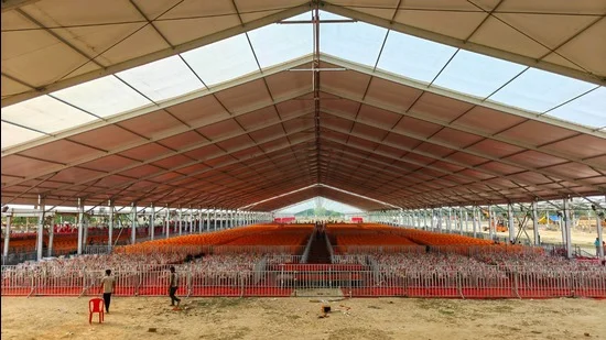 The sprawling venue, spread over more than 100 acres, is being outfitted with massive waterproof pandals, special power arrangements, and seating for over 70,000 attendees, officials confirmed. “Separate transformers are being installed for uninterrupted power, and sitting arrangements are nearly complete,” said a senior police officer involved in the preparations.