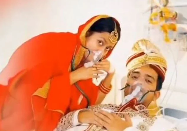 The short reel, set in a hospital-like setting with oxygen cylinders in the background, replaces wedding roses with medicine strips and garlands with gasps for air. The bride even pretends to perform CPR on the groom, symbolising how Delhi’s toxic air has left no one — not even newlyweds — untouched.
